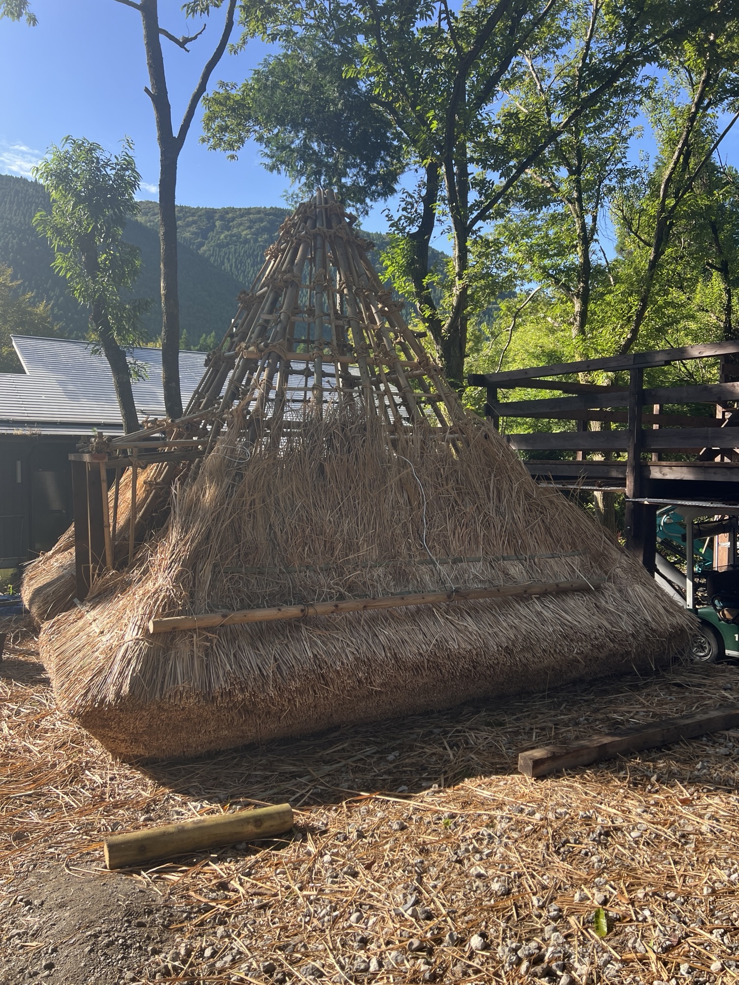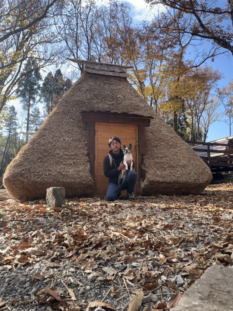 2025年秋に大分県九重町にオープンした三笠オートキャンプ場内の体験型宿泊施設として、縄文時代の住居をモチーフにした茅葺きバンガローを新築しました。構造は竹による組み上げを基本とし、茅は一本一本の流れと厚みを見極めながら手作業で施工。円錐形に近い外観は、雨仕舞いや耐風性といった機能面にも配慮した形状です。内部は大人3人程度が宿泊可能な広さを確保し、自然素材に包まれた落ち着いた空間となっています。冬はコタツも完備!